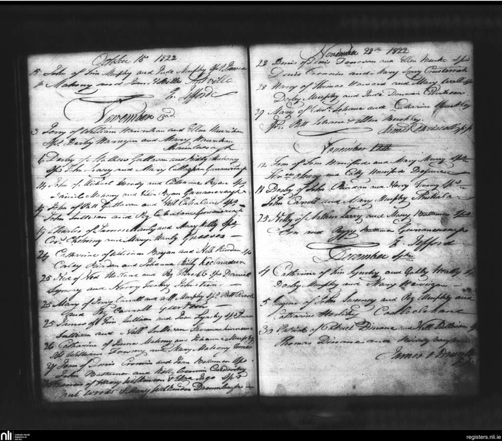 Kilmichael; County of Cork; Diocese of Cork and Ross. Baptisms, Oct. 1822 to Dec. 1822