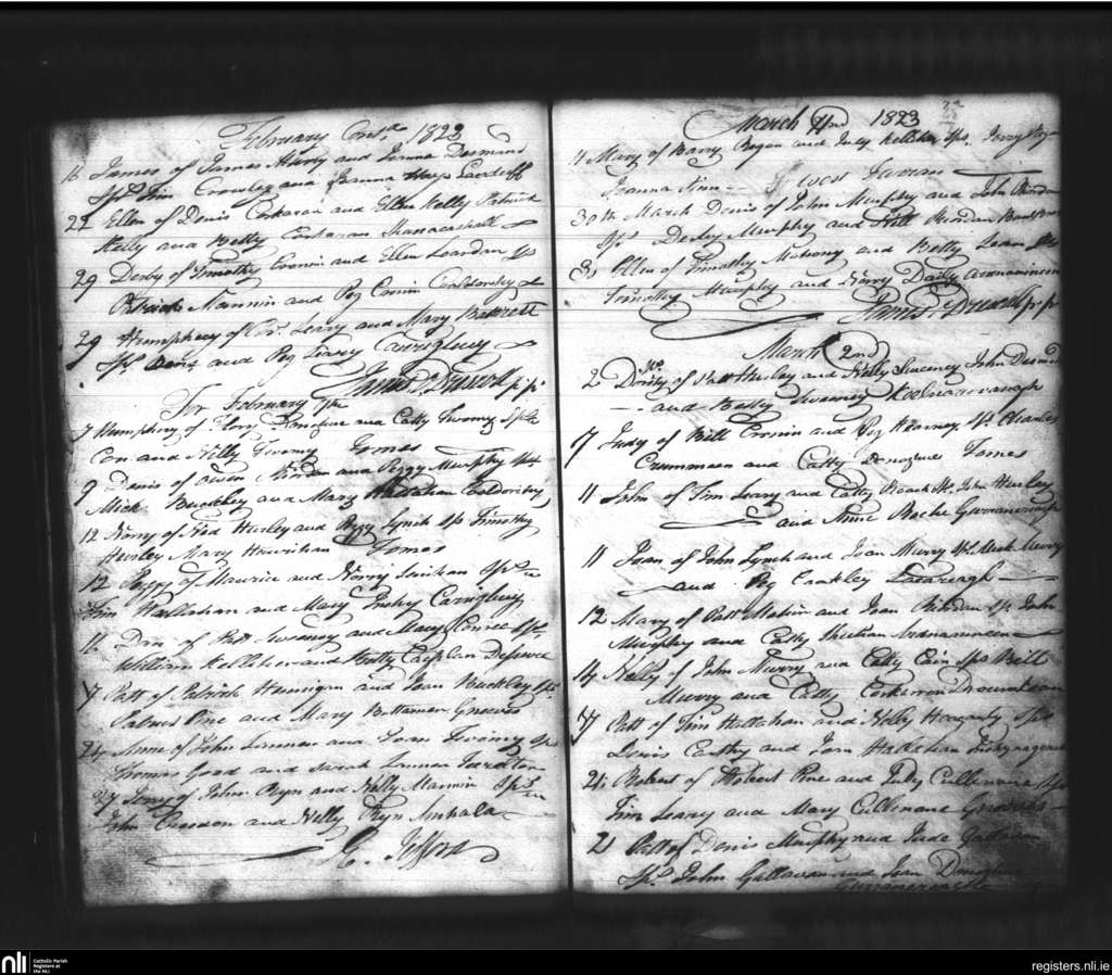 Kilmichael; County of Cork; Diocese of Cork and Ross. Baptisms, Feb. 1823 to Mar. 1823