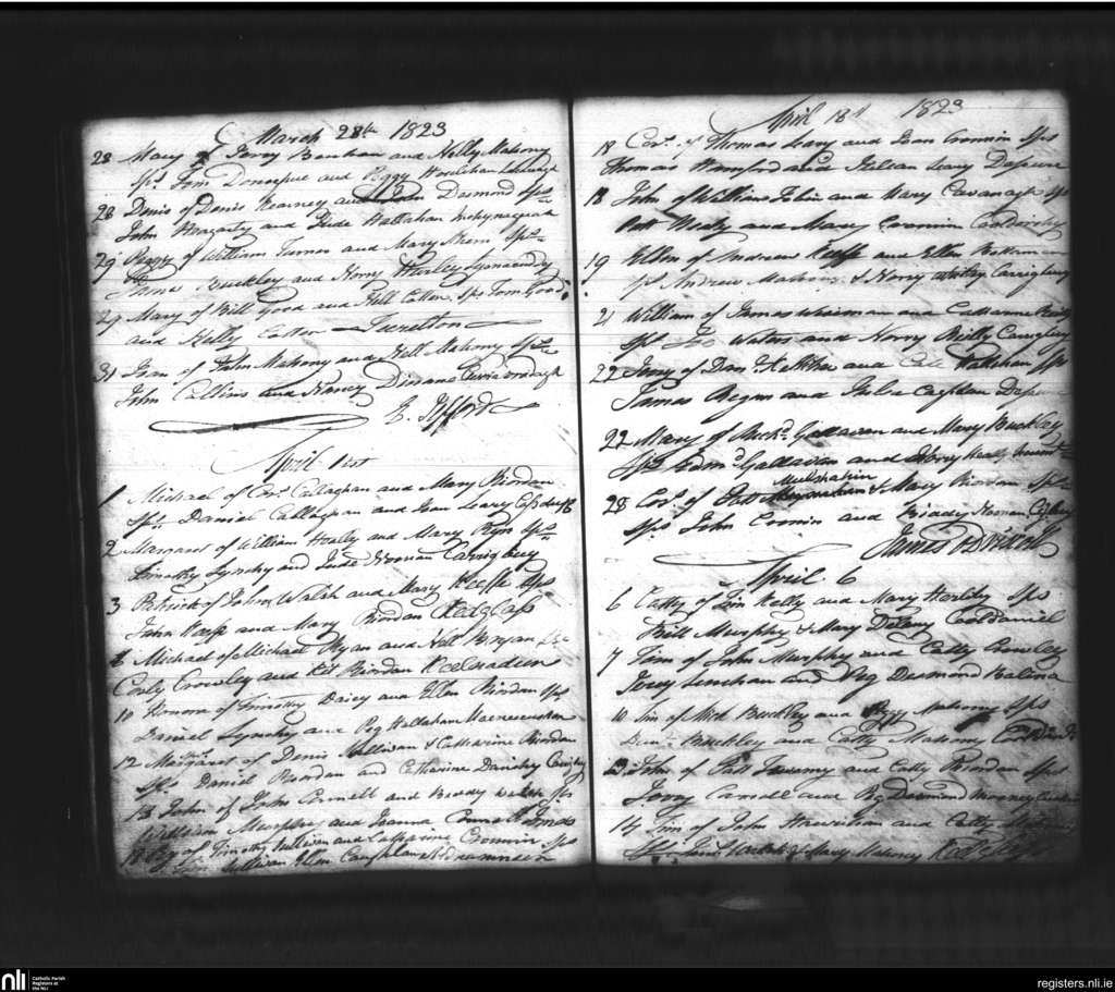Kilmichael; County of Cork; Diocese of Cork and Ross. Baptisms, Mar. 1823 to Apr. 1823