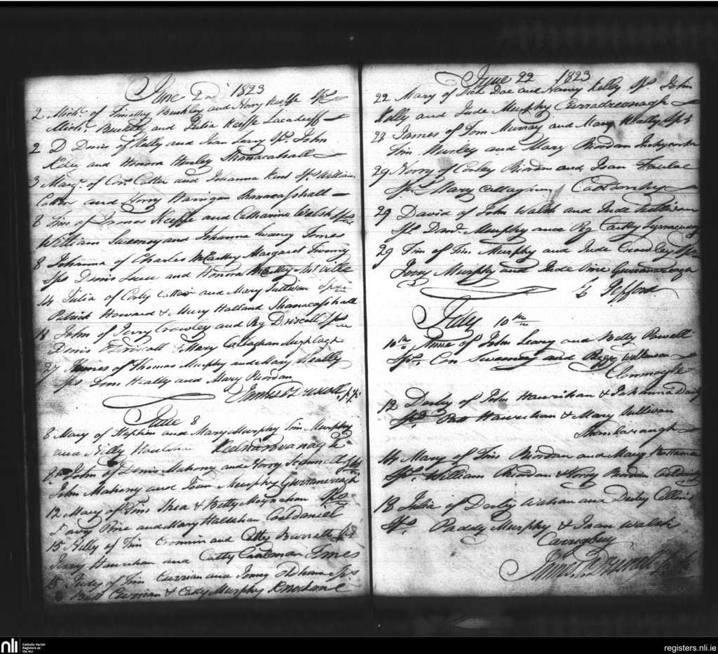 Kilmichael; County of Cork; Diocese of Cork and Ross. Baptisms, June 1823 to July 1823