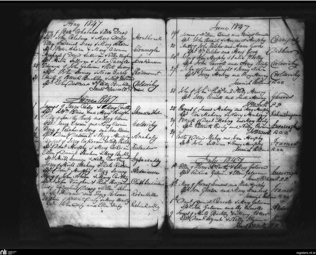 Kilmichael; County of Cork; Diocese of Cork and Ross. Baptisms, May 1847 to July 1847