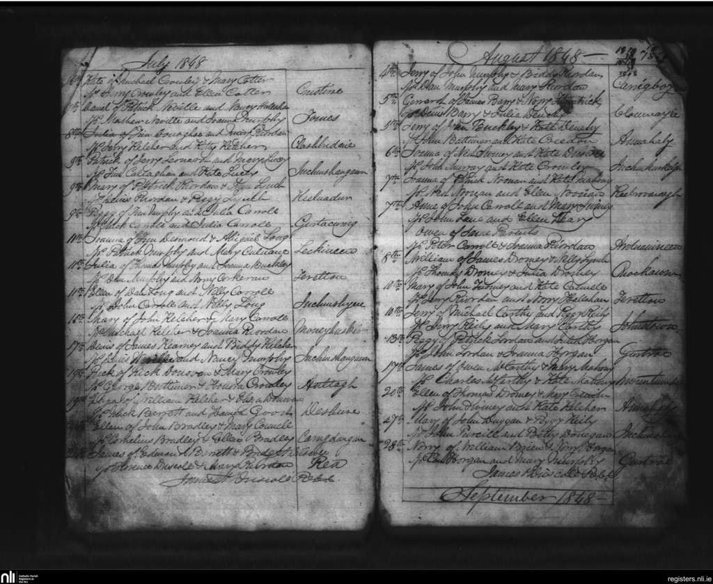 Kilmichael; County of Cork; Diocese of Cork and Ross. Baptisms, July 1848 to Sep. 1848