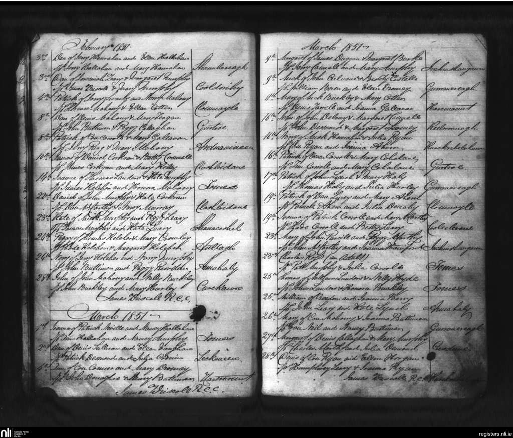 Kilmichael; County of Cork; Diocese of Cork and Ross. Baptisms, Feb. 1851 to Mar. 1851