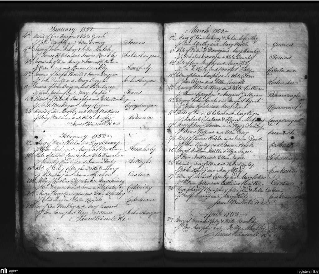 Kilmichael; County of Cork; Diocese of Cork and Ross. Baptisms, Jan. 1852 to Apr. 1852