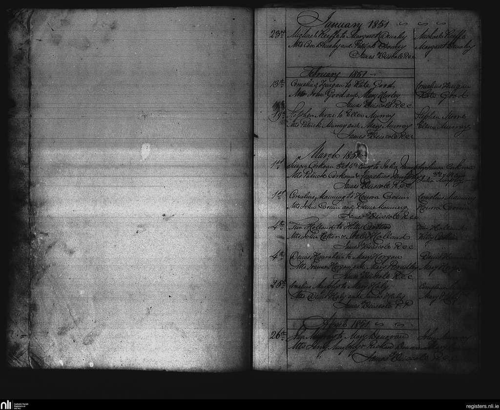 Kilmichael; County of Cork; Diocese of Cork and Ross. Marriages, Jan. 1851 to Apr. 1851