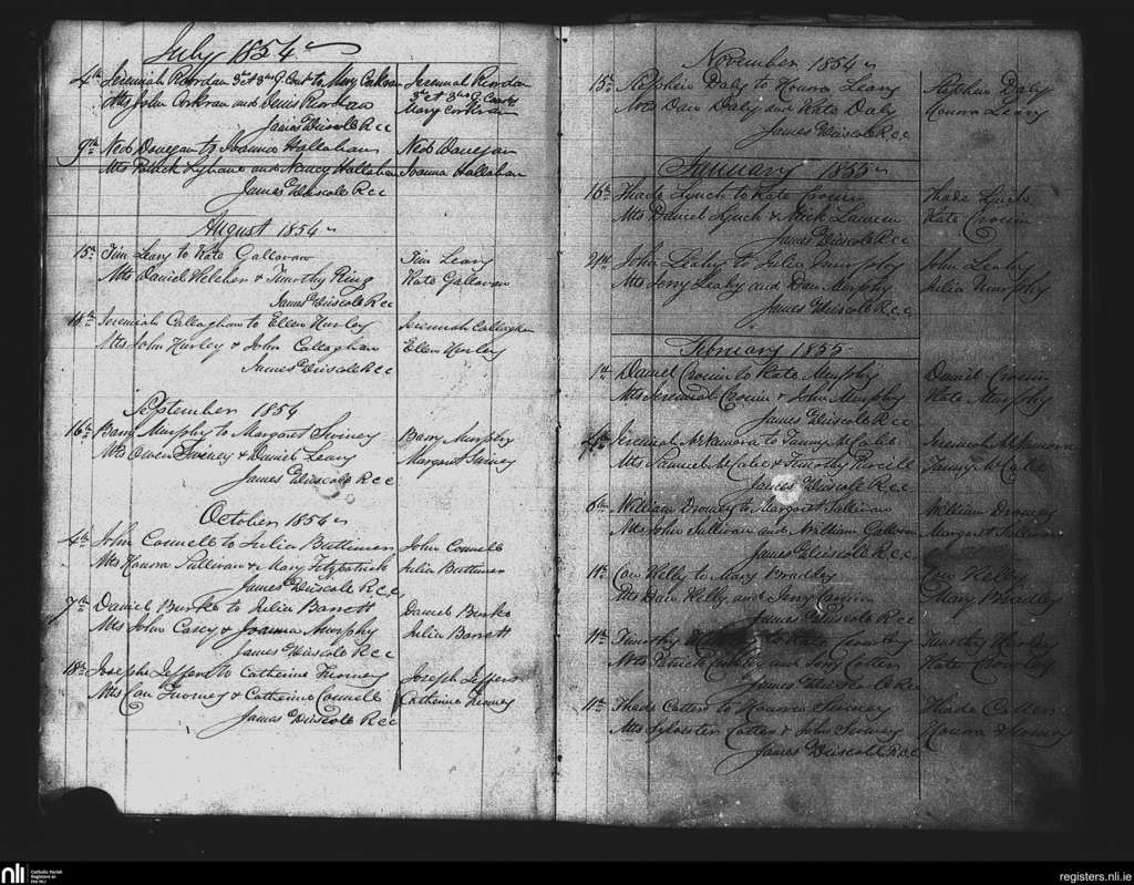 Kilmichael; County of Cork; Diocese of Cork and Ross. Marriages, July 1854 to Feb. 1855
