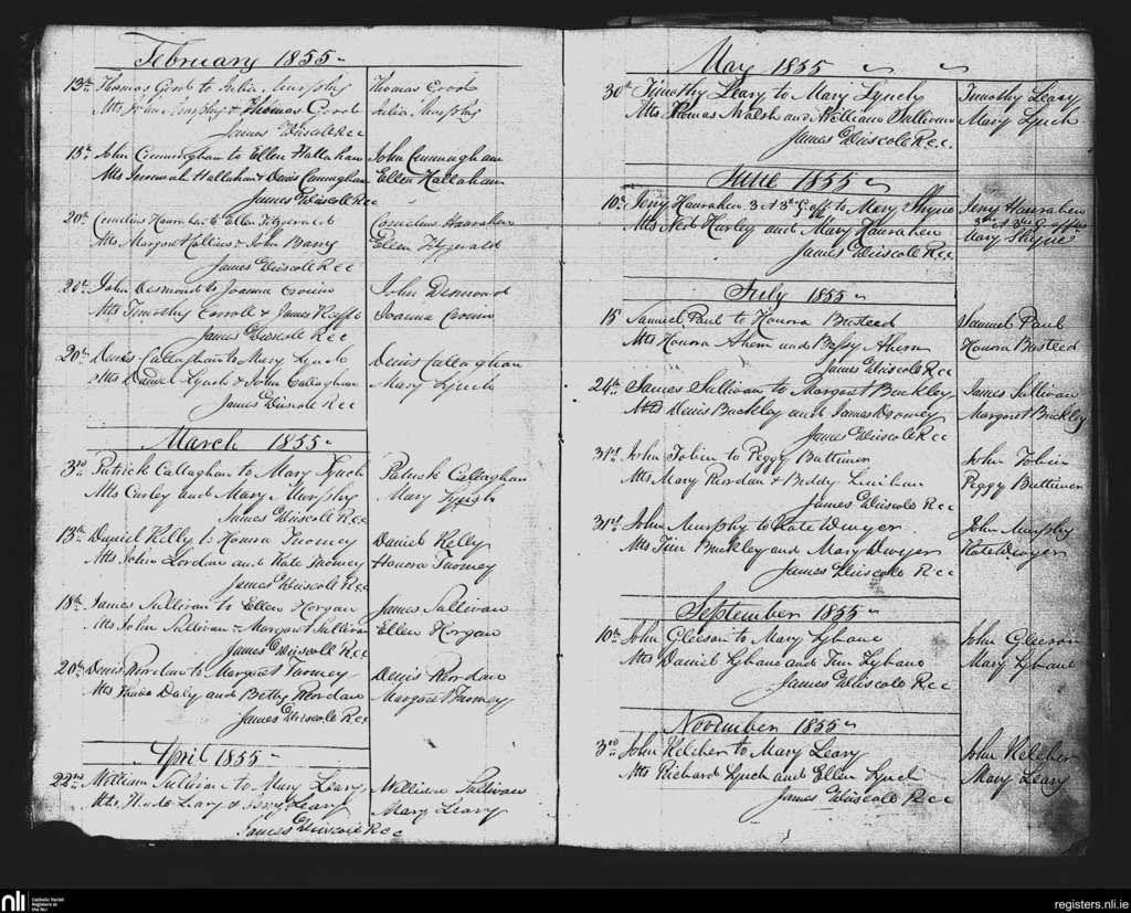 Kilmichael; County of Cork; Diocese of Cork and Ross. Marriages, Feb. 1855 to Nov. 1855