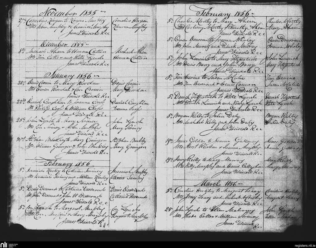 Kilmichael; County of Cork; Diocese of Cork and Ross. Marriages, Nov. 1855 to Mar. 1856