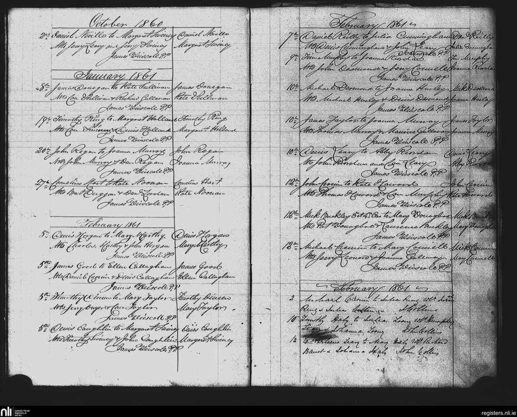 Kilmichael; County of Cork; Diocese of Cork and Ross. Marriages, Oct. 1860 to Feb. 1861