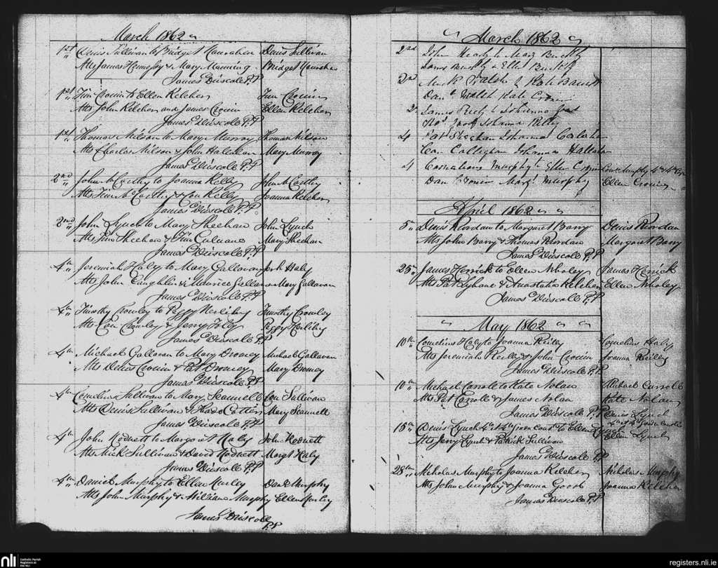 Kilmichael; County of Cork; Diocese of Cork and Ross. Marriages, Mar. 1862 to May 1862