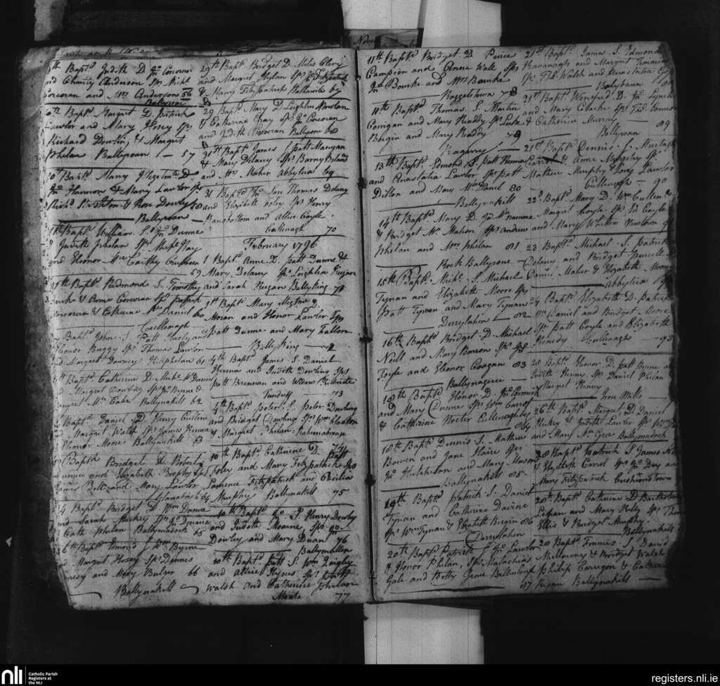 Ballynakill; County of Laois; Diocese of Kildare and Leighlin. Baptisms, Jan. 1796 to Feb. 1796