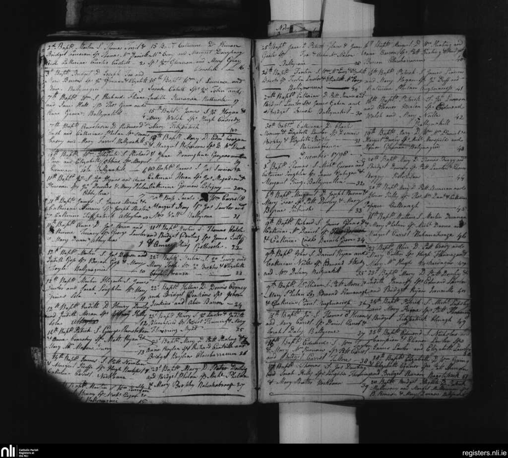 Ballynakill; County of Laois; Diocese of Kildare and Leighlin. Baptisms, Nov. 1798 to Dec. 1798