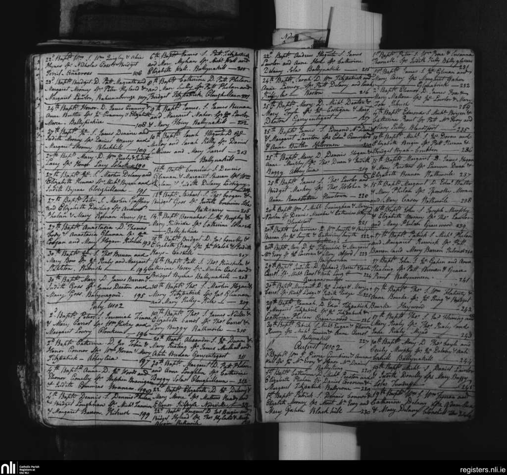Ballynakill; County of Laois; Diocese of Kildare and Leighlin. Baptisms, June 1802 to Aug. 1802