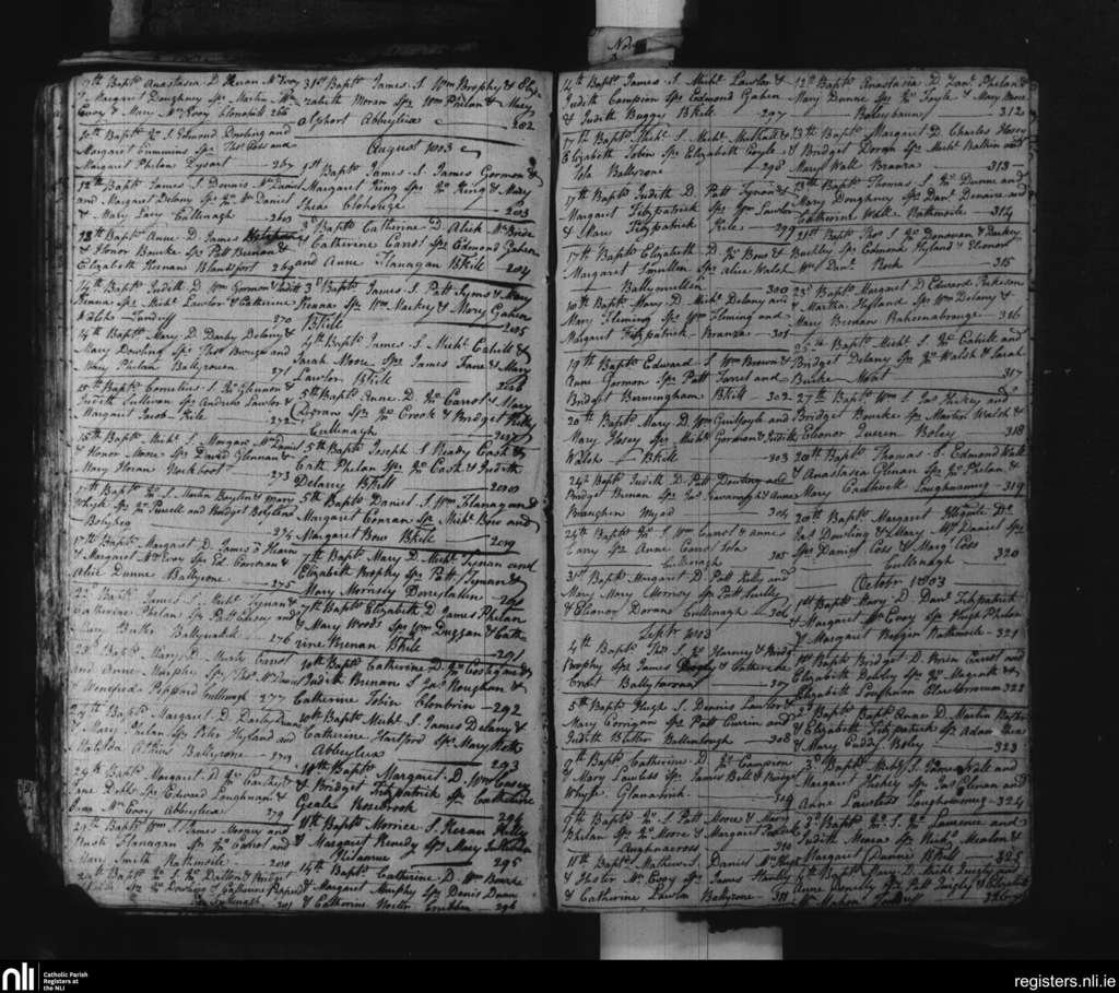 Ballynakill; County of Laois; Diocese of Kildare and Leighlin. Baptisms, July 1803 to Oct. 1803