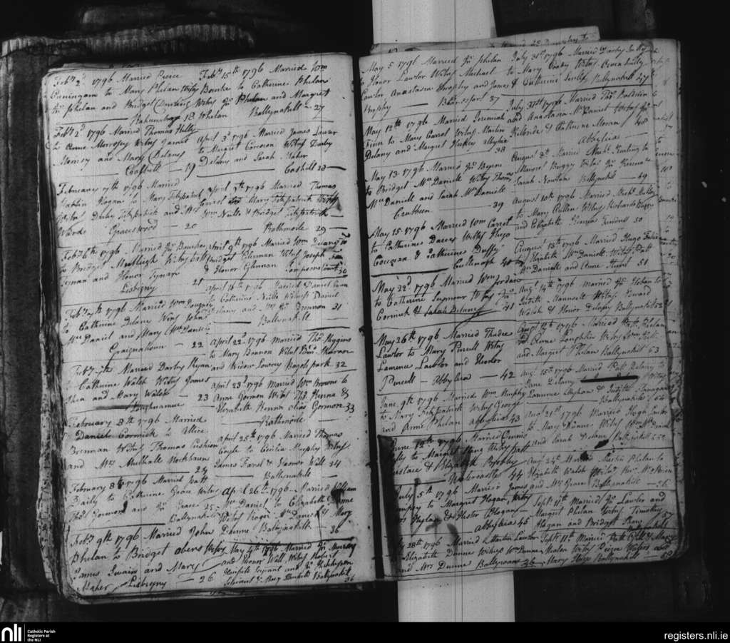 Ballynakill; County of Laois; Diocese of Kildare and Leighlin. Marriages, Feb. 1796 to Sep. 1796