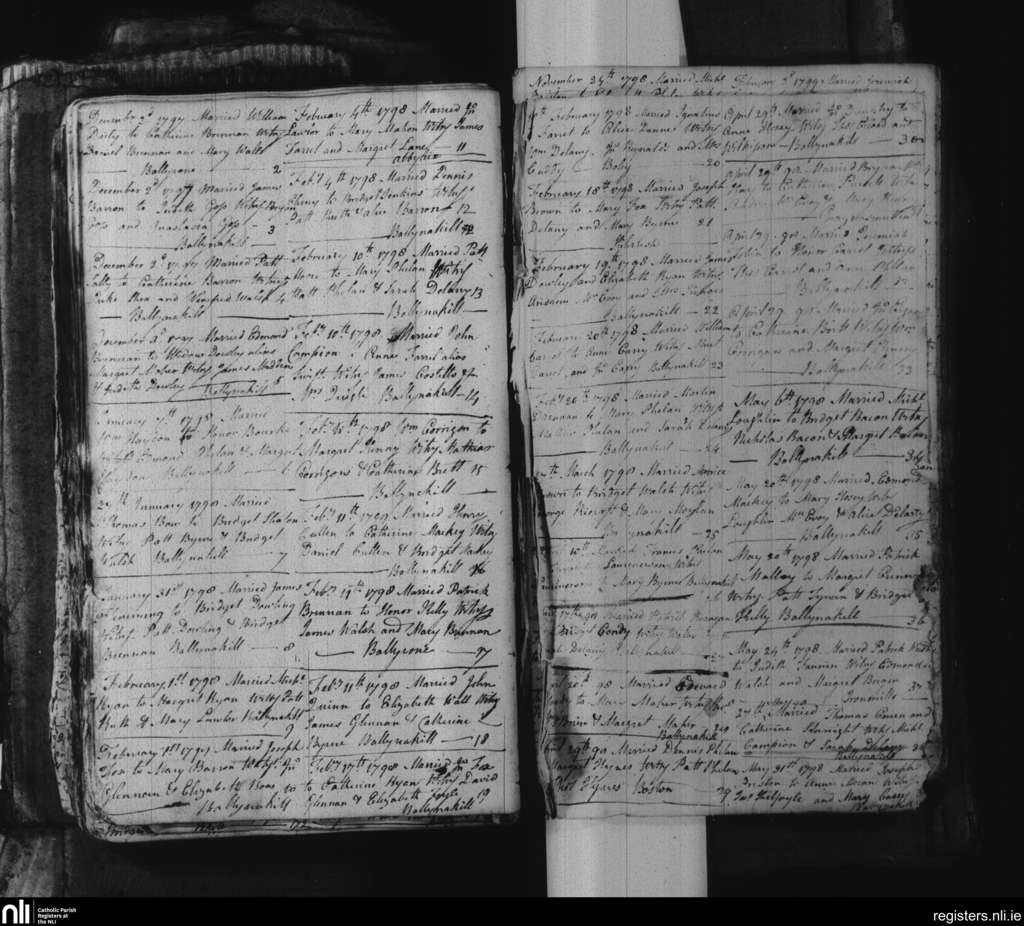 Ballynakill; County of Laois; Diocese of Kildare and Leighlin. Marriages, Dec. 1797 to May 1798