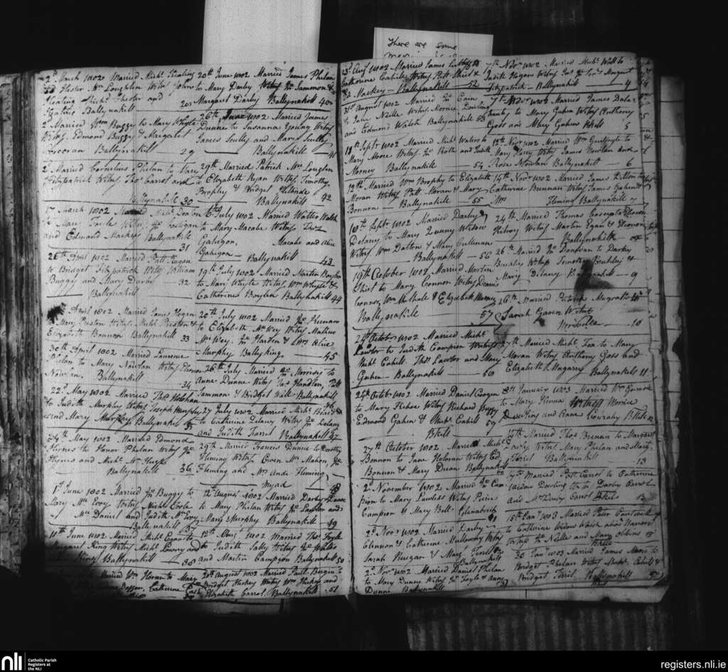 Ballynakill; County of Laois; Diocese of Kildare and Leighlin. Marriages, Mar. 1802 to Jan. 1803
