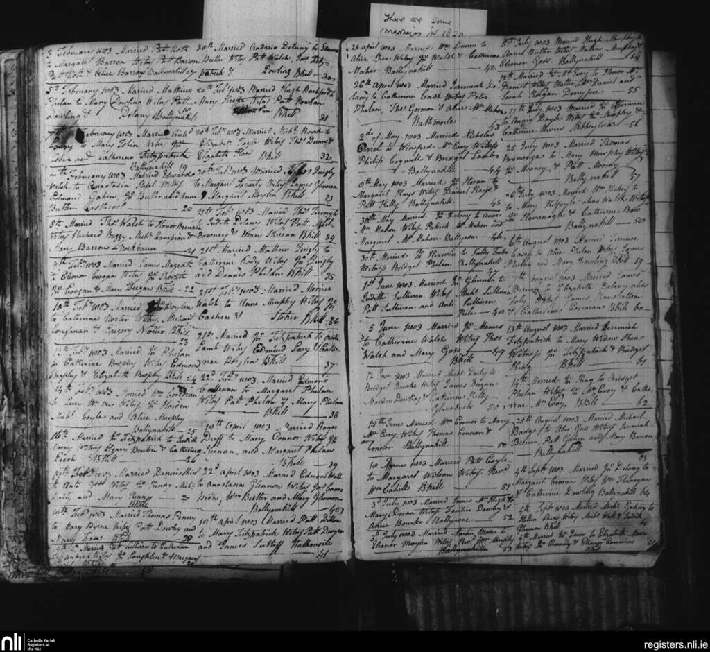 Ballynakill; County of Laois; Diocese of Kildare and Leighlin. Marriages, Feb. 1803 to Sep. 1803