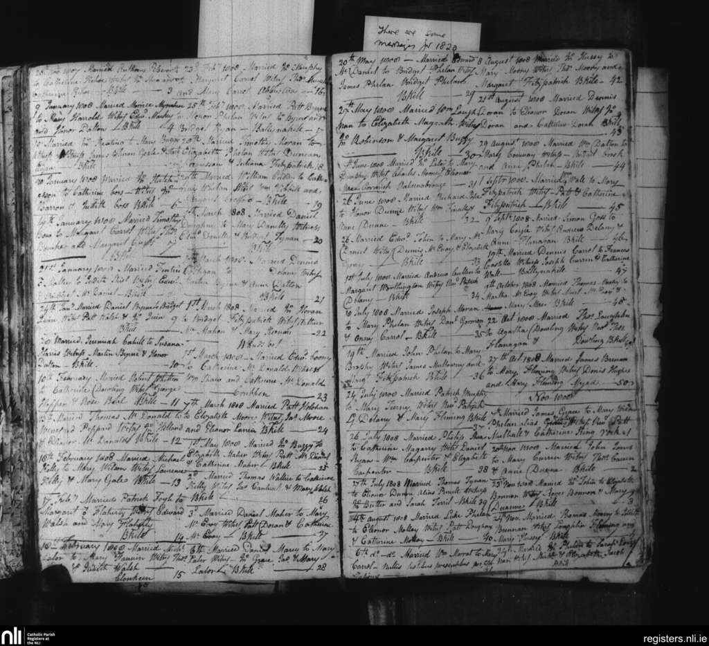 Ballynakill; County of Laois; Diocese of Kildare and Leighlin. Marriages, Nov. 1807 to Dec. 1808