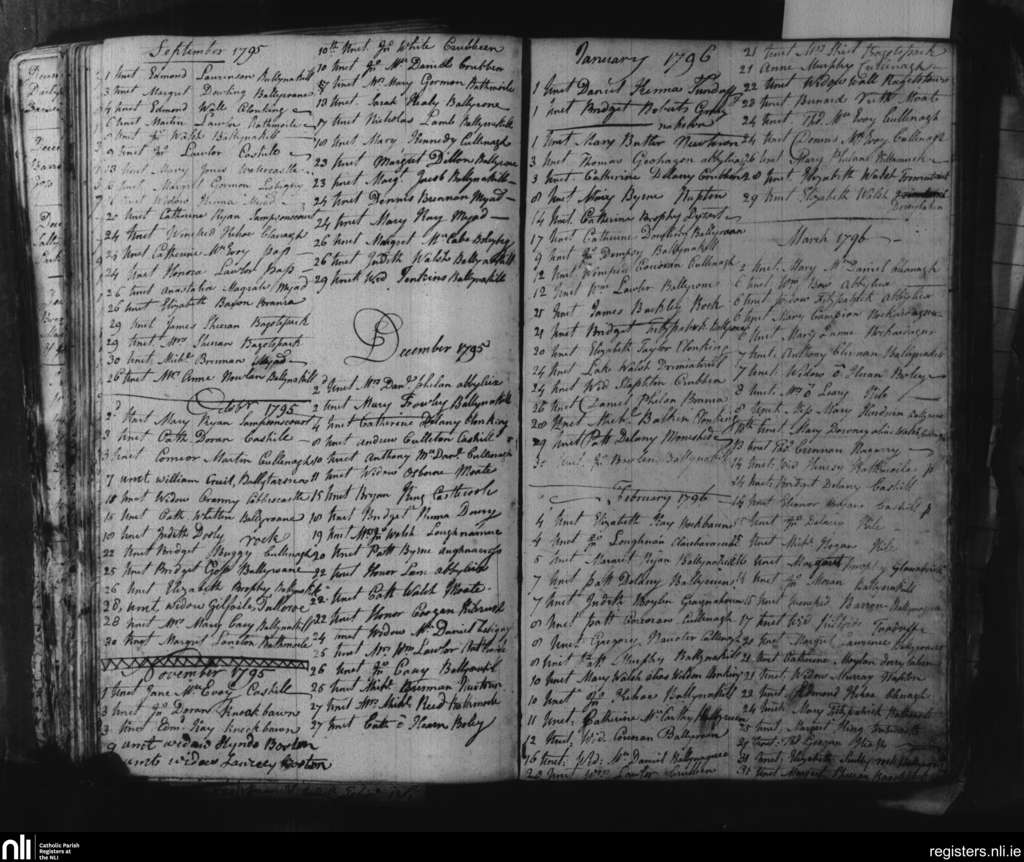 Ballynakill; County of Laois; Diocese of Kildare and Leighlin. Unctions, Sep. 1795 to Mar. 1796
