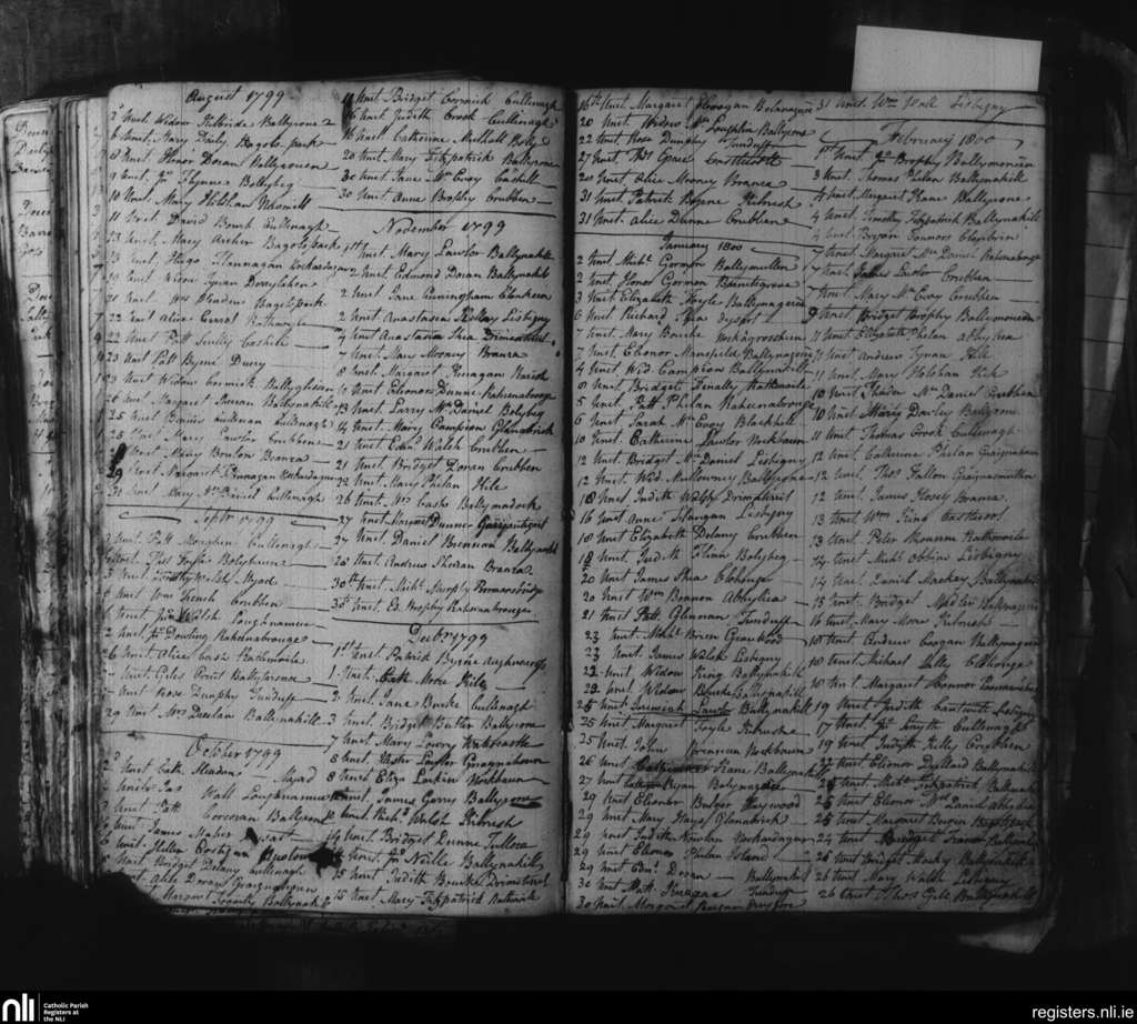 Ballynakill; County of Laois; Diocese of Kildare and Leighlin. Unctions, Aug. 1799 to Feb. 1800