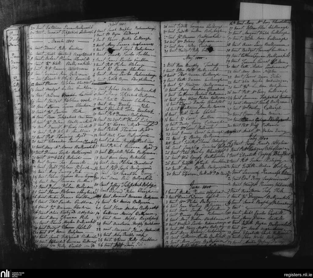 Ballynakill; County of Laois; Diocese of Kildare and Leighlin. Unctions, Feb. 1800 to July 1800