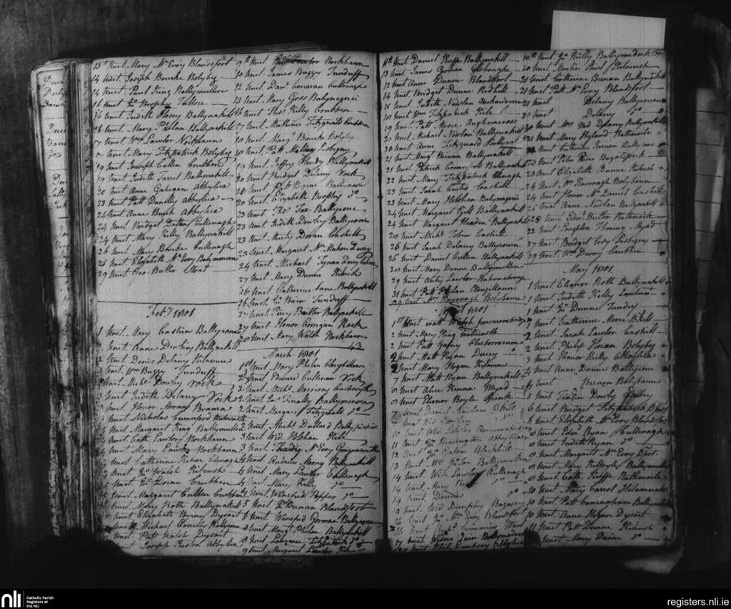 Ballynakill; County of Laois; Diocese of Kildare and Leighlin. Unctions, Jan. 1801 to May 1801