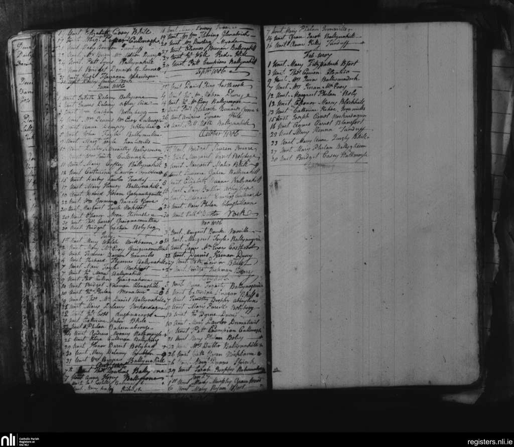 Ballynakill; County of Laois; Diocese of Kildare and Leighlin. Unctions, May 1806 to Feb. 1807