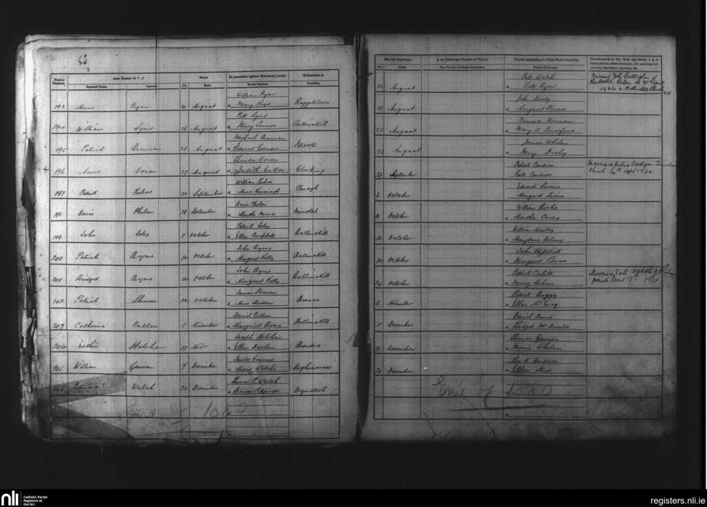 Ballynakill; County of Laois; Diocese of Kildare and Leighlin. Baptisms, Aug. 1880 to Dec. 1880