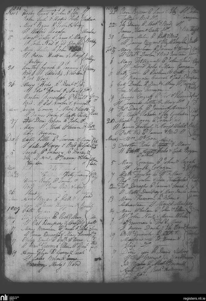 Baltinglass; County of Kildare, Wicklow; Diocese of Kildare and Leighlin. Baptisms, Nov. 1808 to Mar. 1809
