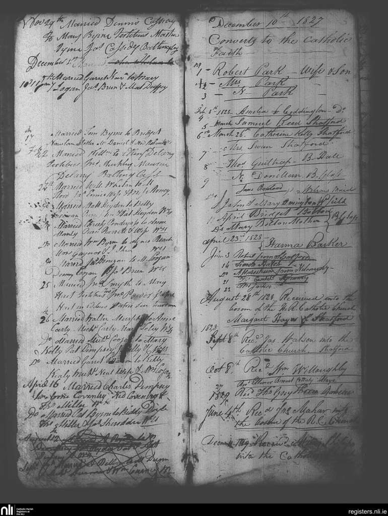 Baltinglass; County of Wicklow, Kildare; Diocese of Kildare and Leighlin. Marriages, Nov. 1816 to Dec. 1829