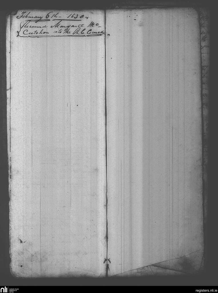 Baltinglass; County of Wicklow, Kildare; Diocese of Kildare and Leighlin. Marriages, Feb. 1830