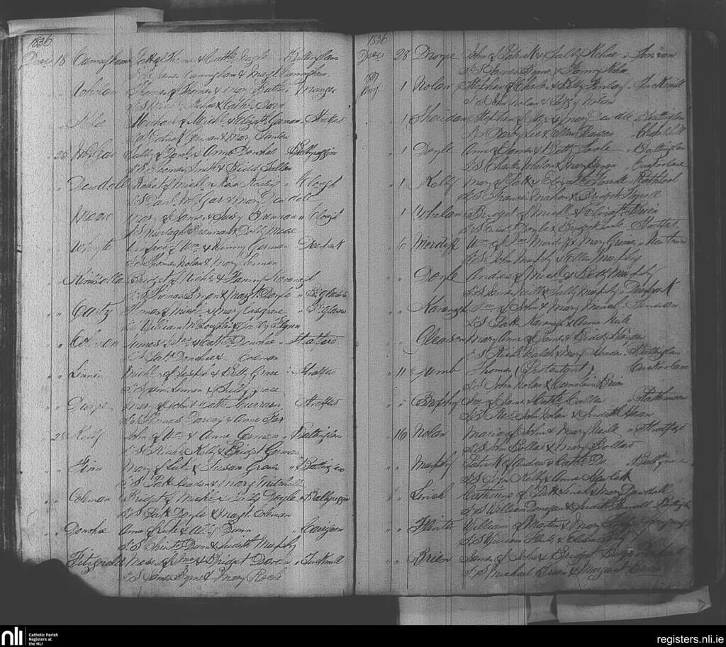 Baltinglass; County of Wicklow, Kildare; Diocese of Kildare and Leighlin. Baptisms, Dec. 1836 to Jan. 1837