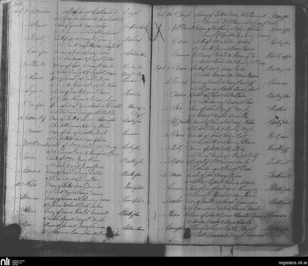 Baltinglass; County of Wicklow, Kildare; Diocese of Kildare and Leighlin. Baptisms, July 1838 to Aug. 1838