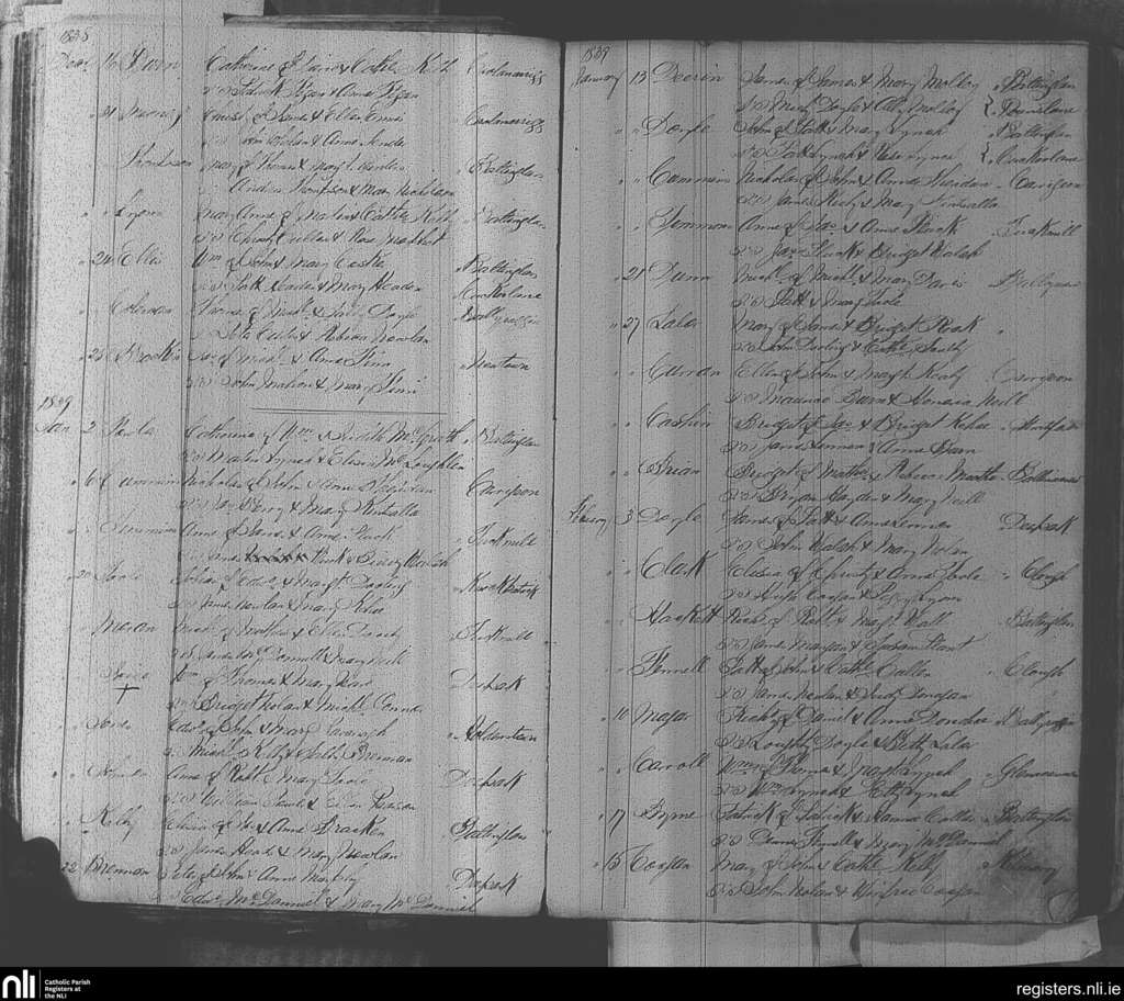 Baltinglass; County of Wicklow, Kildare; Diocese of Kildare and Leighlin. Baptisms, Dec. 1838 to Feb. 1839