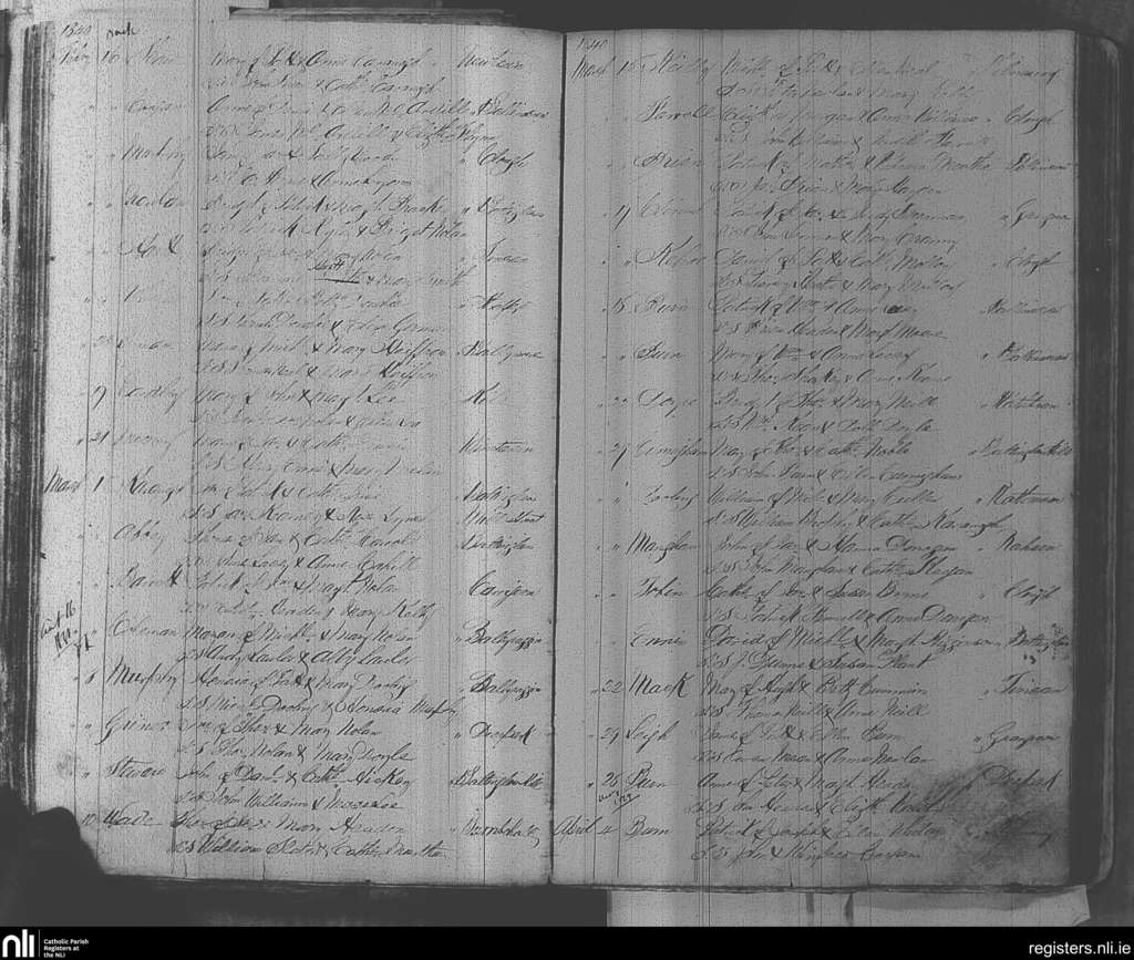 Baltinglass; County of Wicklow, Kildare; Diocese of Kildare and Leighlin. Baptisms, Feb. 1840 to Apr. 1840