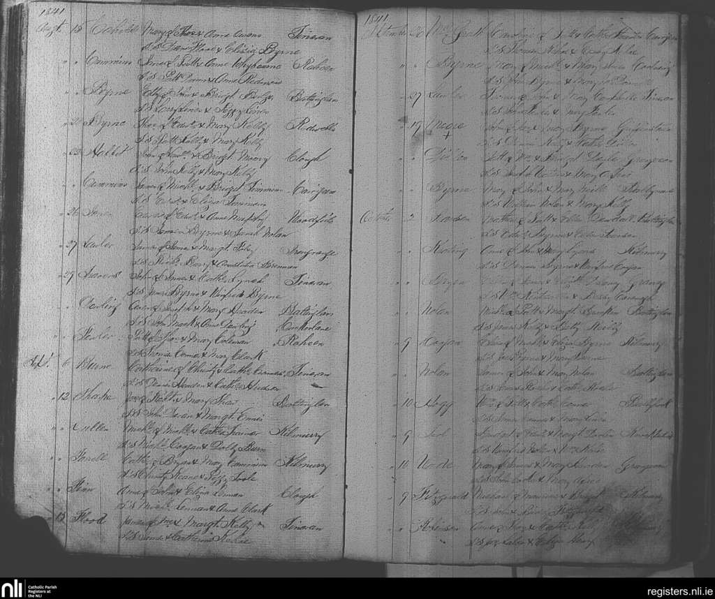 Baltinglass; County of Wicklow, Kildare; Diocese of Kildare and Leighlin. Baptisms, Aug. 1841 to Oct. 1841