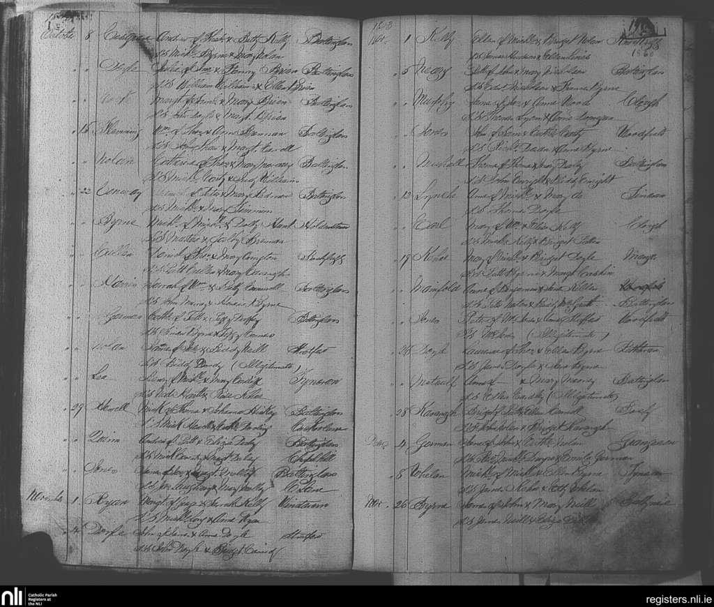 Baltinglass; County of Wicklow, Kildare; Diocese of Kildare and Leighlin. Baptisms, Oct. 1843 to Dec. 1843