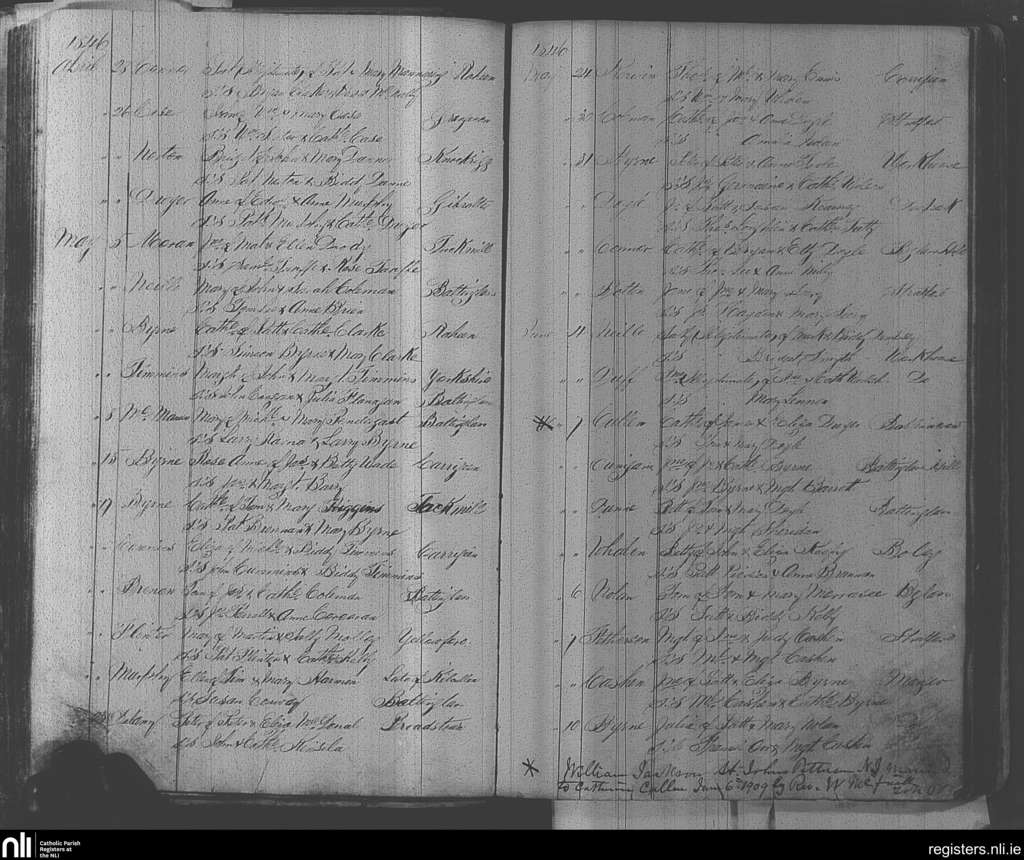 Baltinglass; County of Wicklow, Kildare; Diocese of Kildare and Leighlin. Baptisms, Apr. 1846 to June 1846