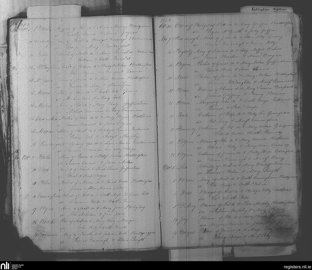 Baltinglass; County of Wicklow, Kildare; Diocese of Kildare and Leighlin. Baptisms, Sep. 1852 to Dec. 1852