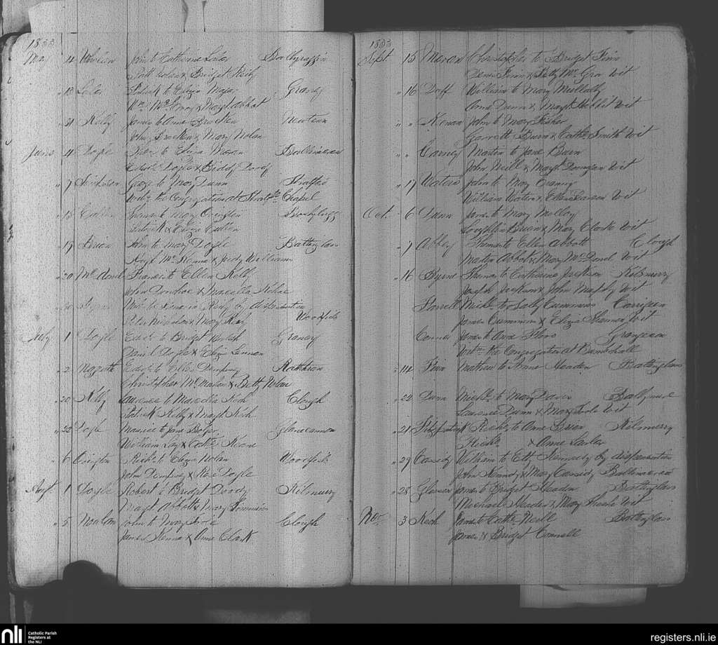 Baltinglass; County of Wicklow, Kildare; Diocese of Kildare and Leighlin. Marriages, May 1833 to Nov. 1833
