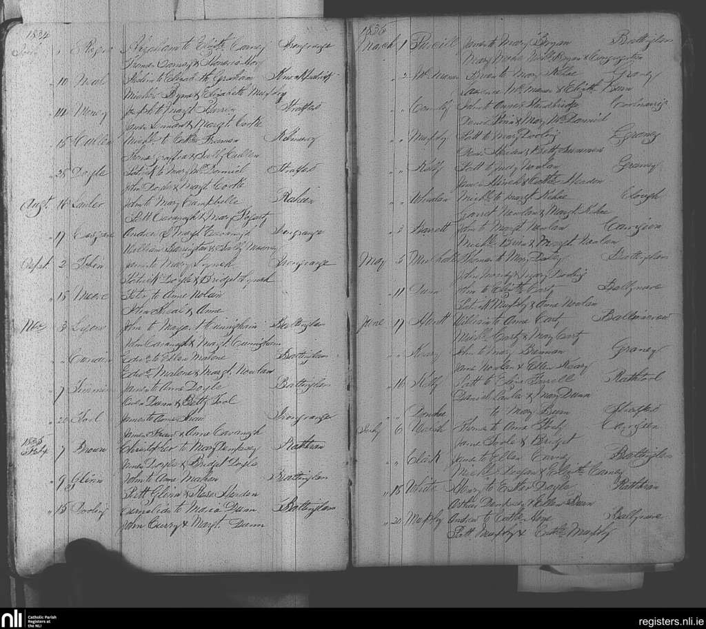 Baltinglass; County of Wicklow, Kildare; Diocese of Kildare and Leighlin. Marriages, July 1834 to July 1835