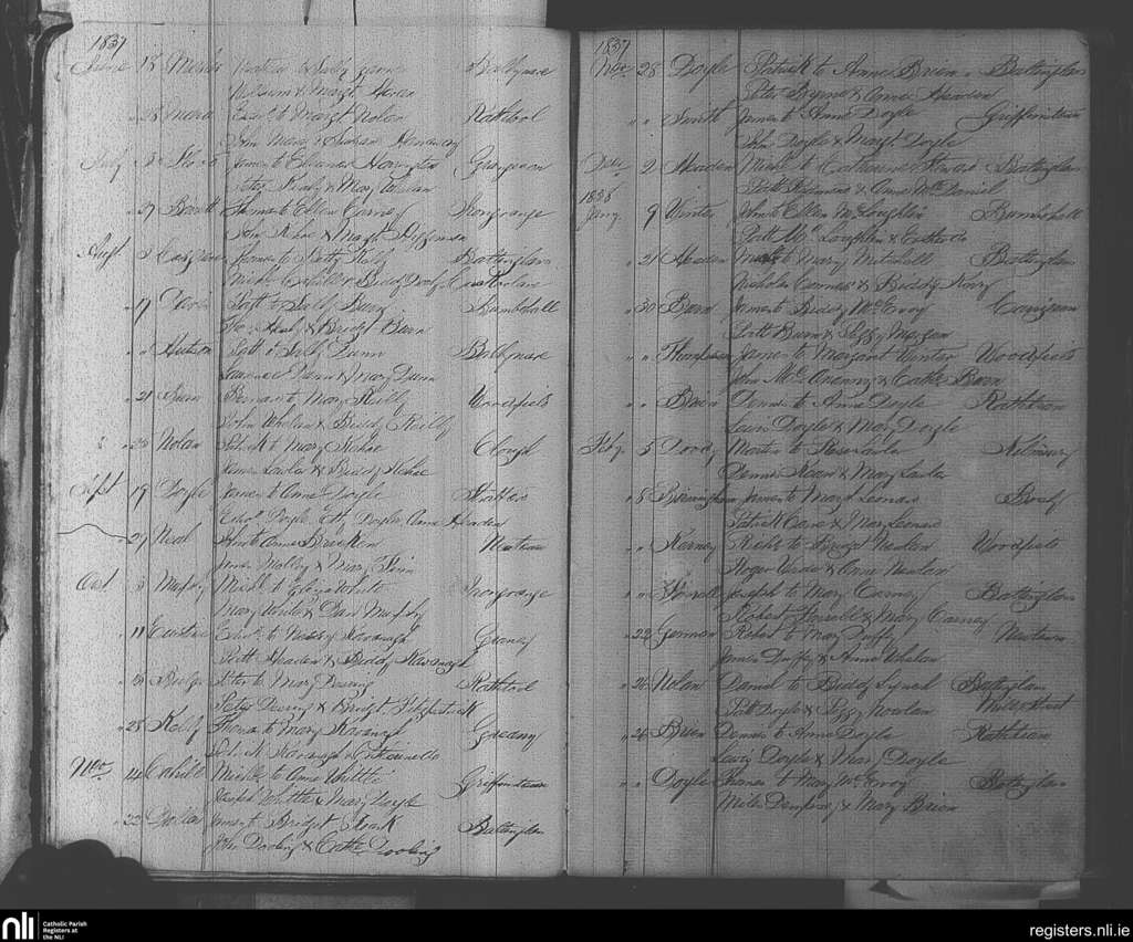 Baltinglass; County of Wicklow, Kildare; Diocese of Kildare and Leighlin. Marriages, June 1837 to Feb. 1838