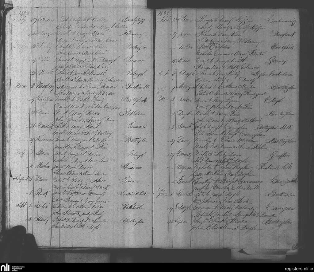 Baltinglass; County of Wicklow, Kildare; Diocese of Kildare and Leighlin. Marriages, Feb. 1838 to Jan. 1839
