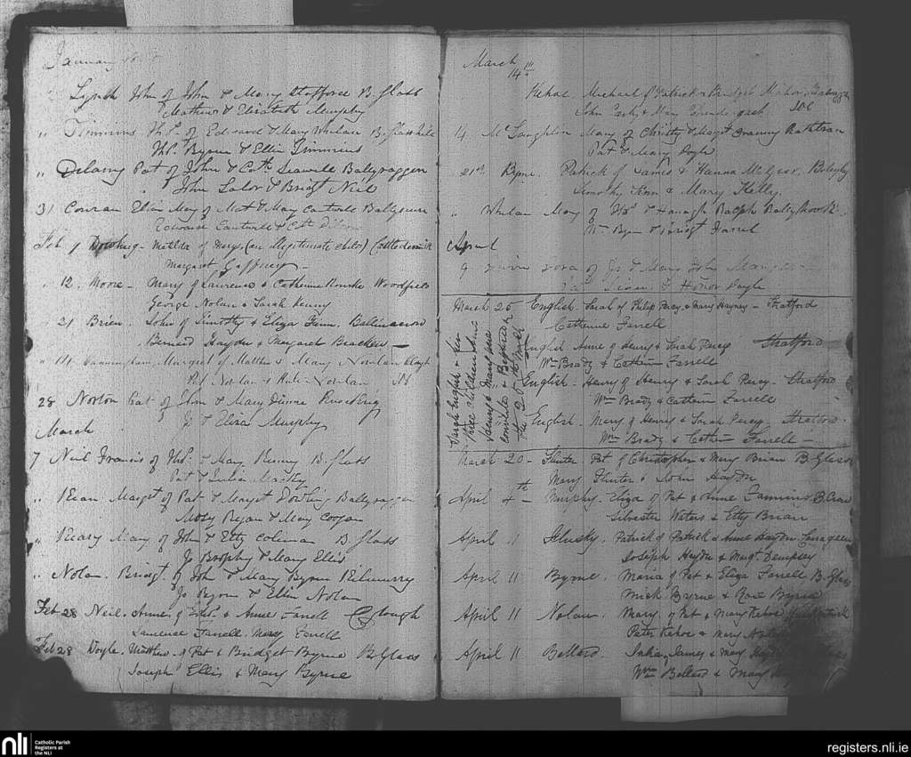 Baltinglass; County of Wicklow, Kildare; Diocese of Kildare and Leighlin. Baptisms, Jan. 1858 to Apr. 1858