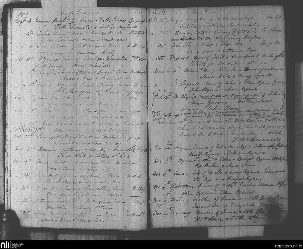 Baltinglass; County of Wicklow, Kildare; Diocese of Kildare and Leighlin. Baptisms, Sep. 1859 to Dec. 1859