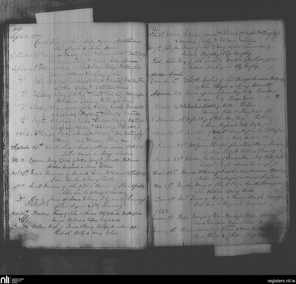 Baltinglass; County of Wicklow, Kildare; Diocese of Kildare and Leighlin. Baptisms, Sep. 1861 to Jan. 1862