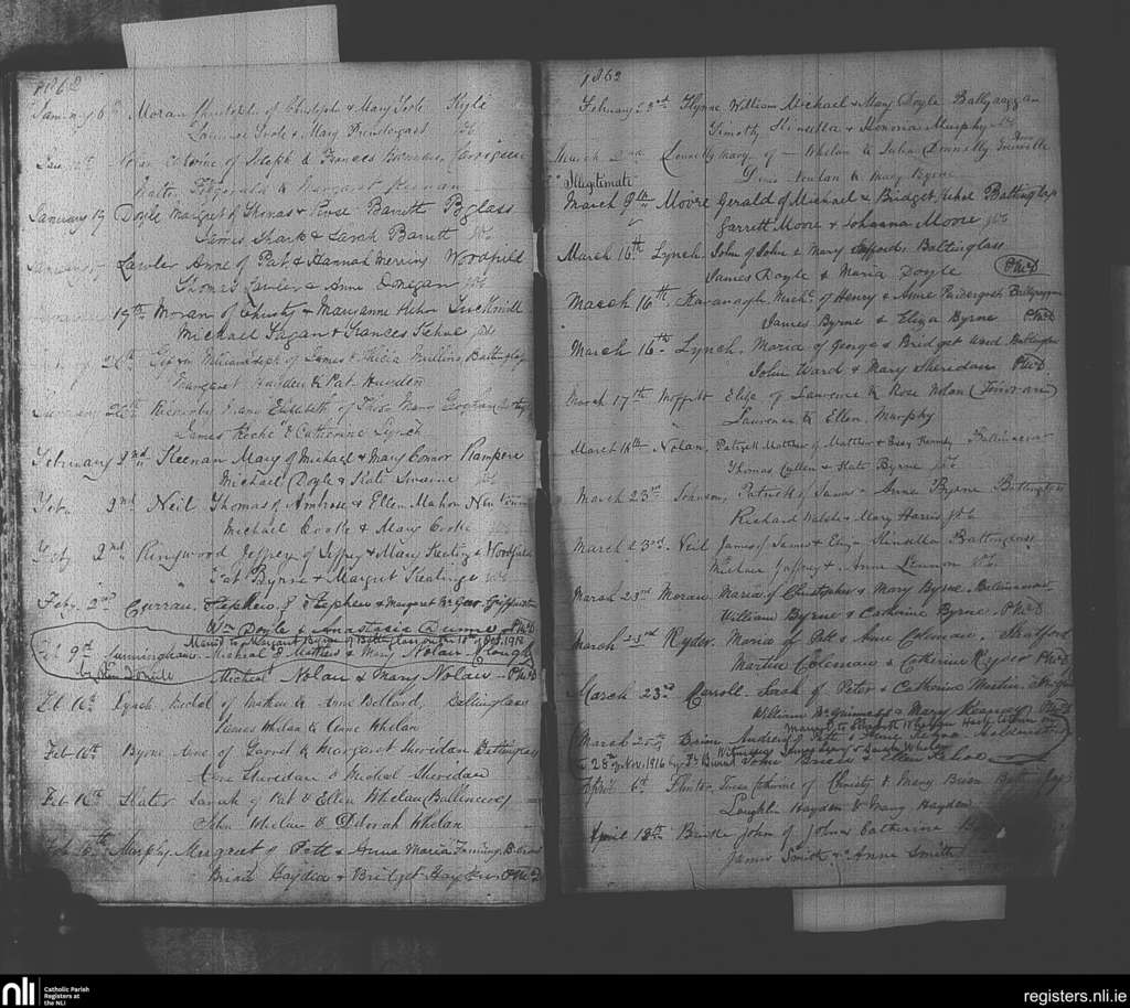 Baltinglass; County of Wicklow, Kildare; Diocese of Kildare and Leighlin. Baptisms, Jan. 1862 to Apr. 1862