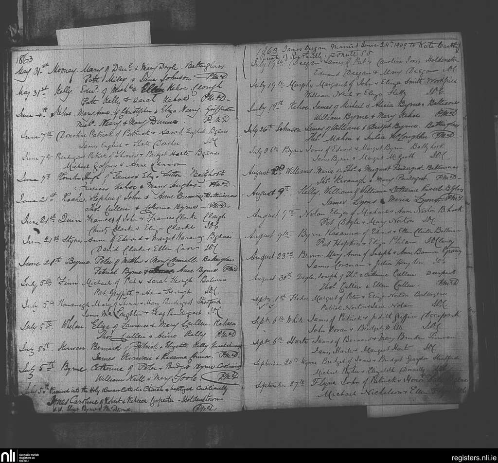 Baltinglass; County of Wicklow, Kildare; Diocese of Kildare and Leighlin. Baptisms, May 1863 to Sep. 1863