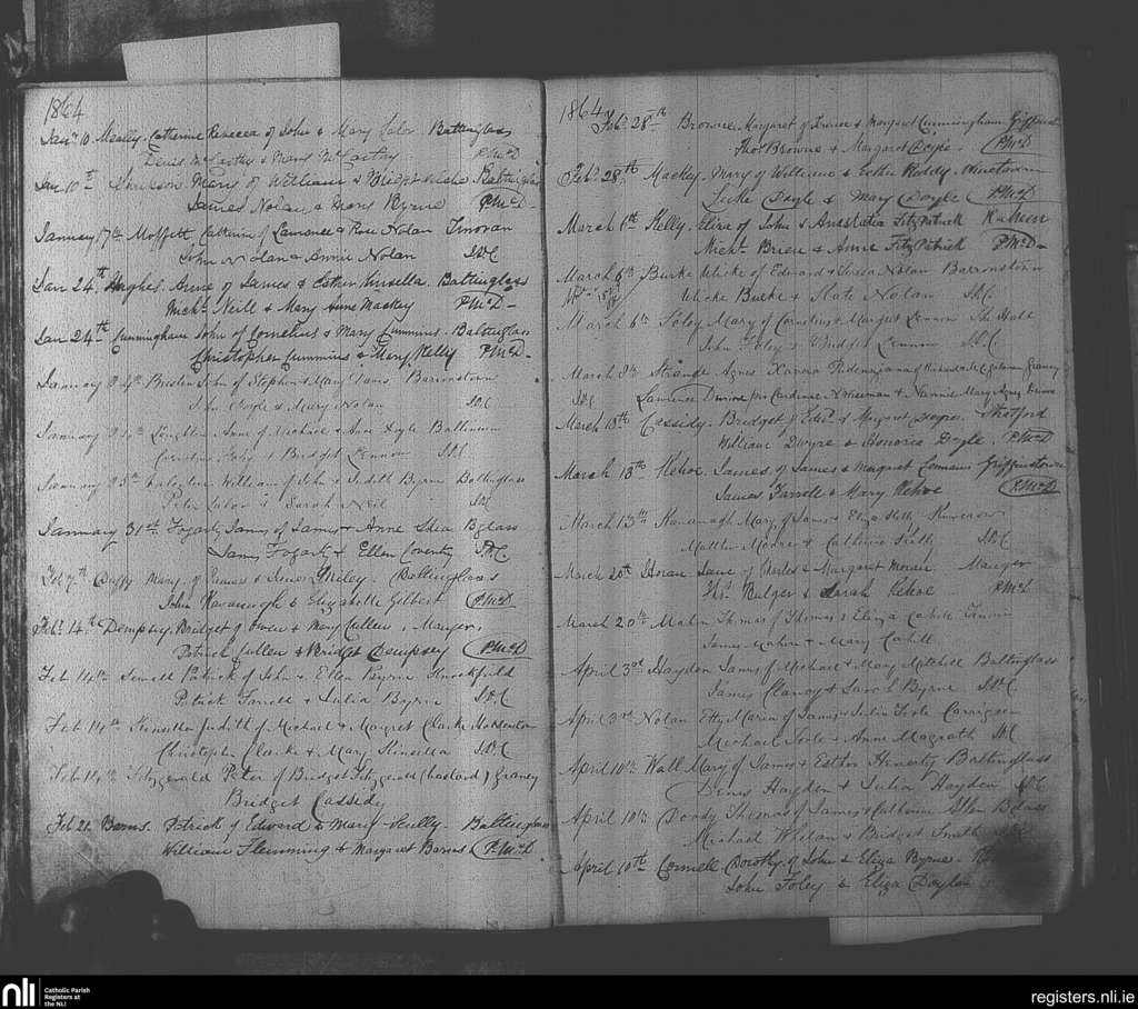 Baltinglass; County of Wicklow, Kildare; Diocese of Kildare and Leighlin. Baptisms, Jan. 1864 to Apr. 1864